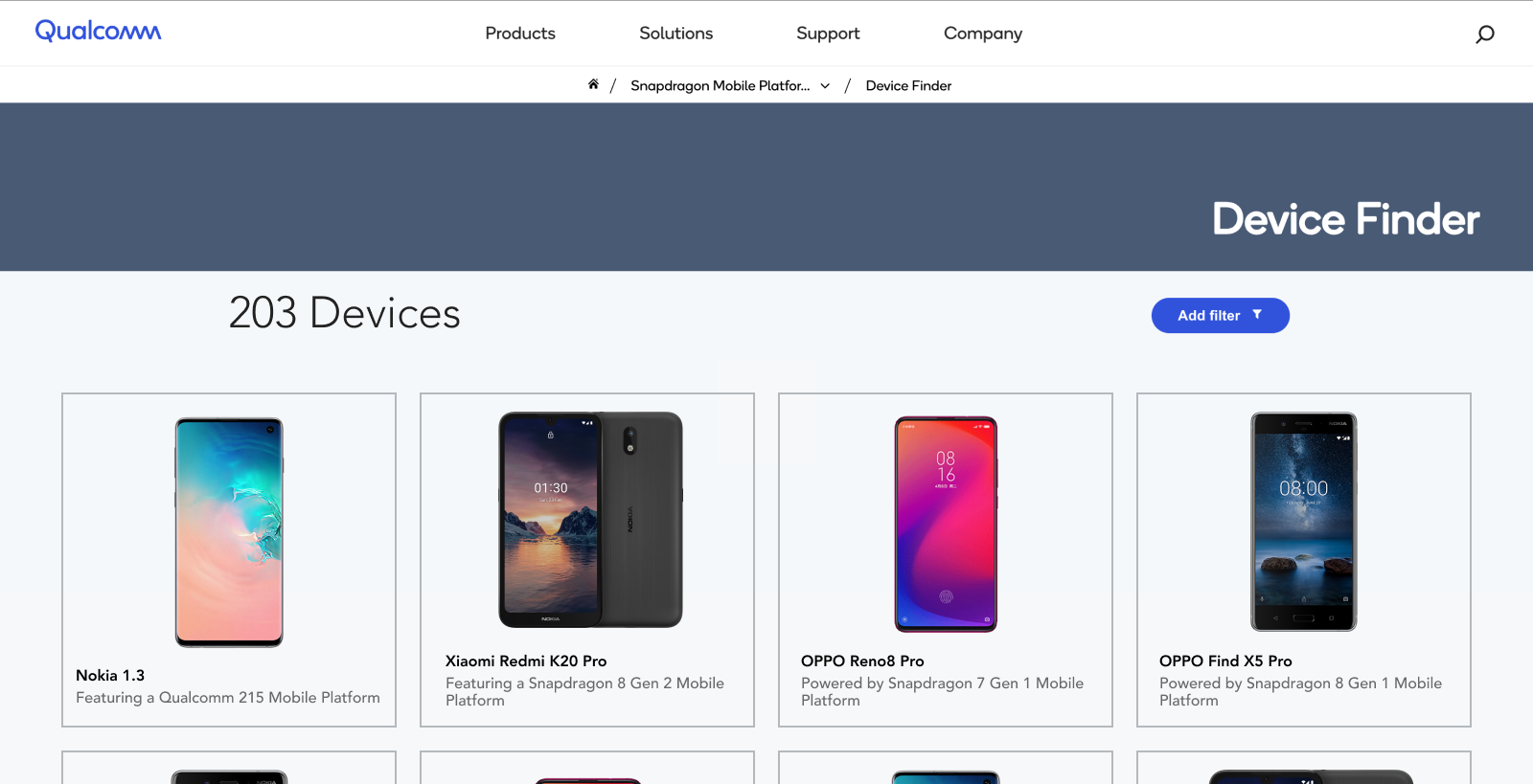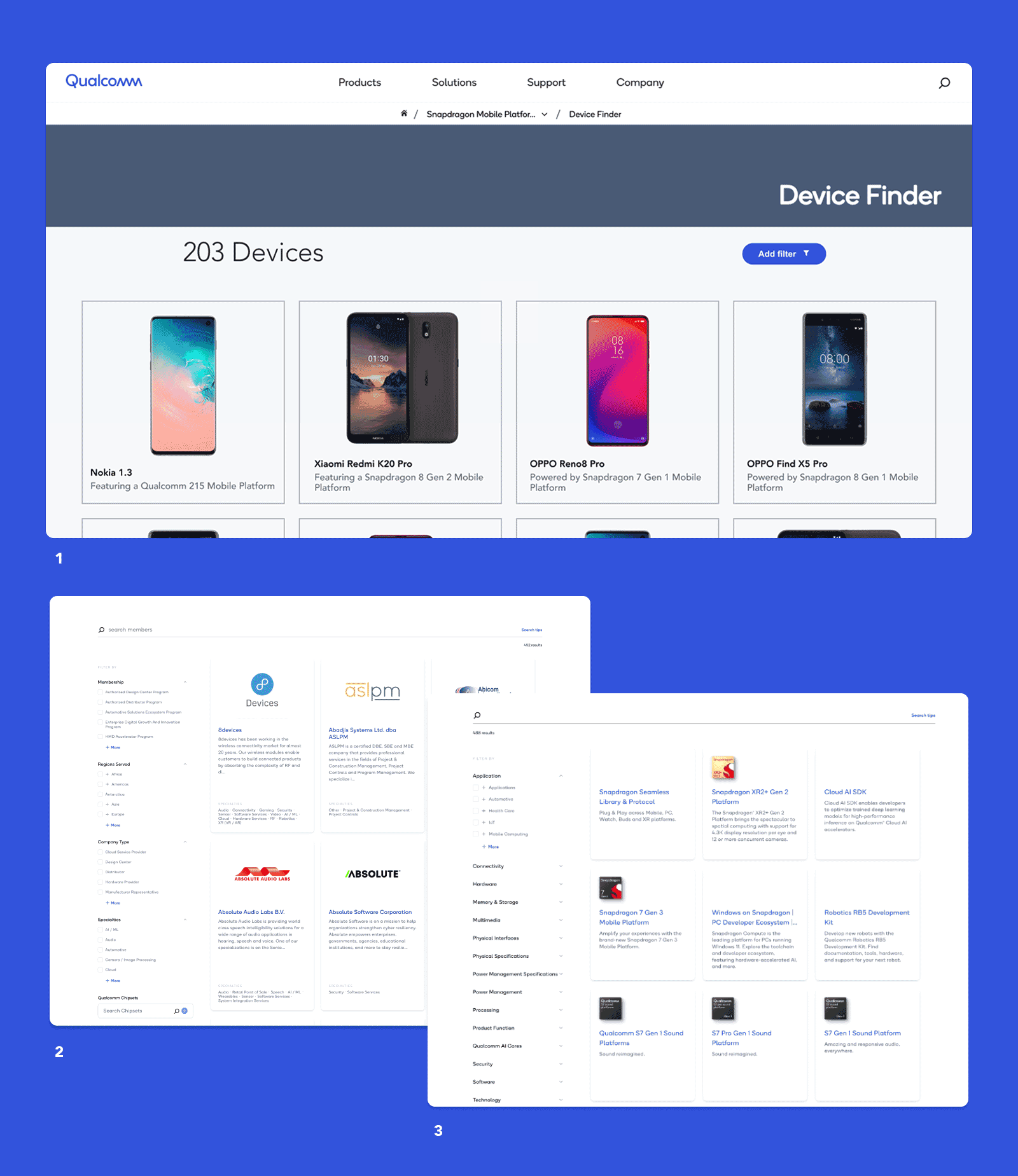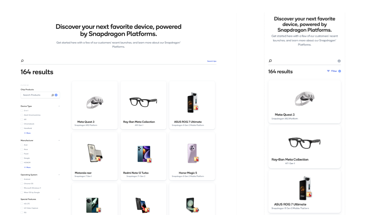 user wants to purchase the newest device that uses Qualcomm’s latest Mobile Processor, they would navigate to the smartphone finder etc. However, we learned that users were unable to search for certain devices as previously expected.