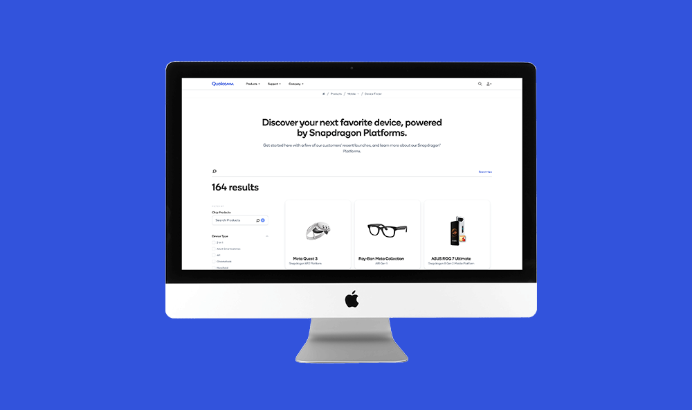 This case study showcases a comprehensive UX redesign of Qualcomm's Device Finder that transformed a basic device library into an intuitive product discovery platform, achieving a 13% conversion rate within the first month.